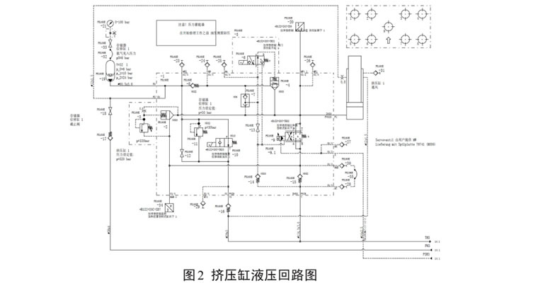 拉伸墊的擠壓力是依靠滑塊壓上拉伸墊而被動產生的壓力,壓力大小的控制由伺服閥來實現(xiàn)。常見的壓力下超故障有缸體活塞密封泄漏、安全閥損壞、伺服閥損壞、預充油液不足等形式。首先擠壓缸上行是依靠 20bar 的預充壓力推動活塞桿跟隨頂冠上行至上死點,由于在該過程中每個缸的壓力和位置都沒有監(jiān)控,即使出現(xiàn)預充壓力不足、活塞沒有上行至上死點都不會故障報警,如圖2所示。在沖壓力下超故障出現(xiàn)以后,可以在操控面板的幫助界面查看擠壓缸預充壓力是否正常,排除預充壓力是否合適以后,再排查伺服閥以及伺服閥控制模塊。在長時間停機或者拉伸墊大修以后出現(xiàn)擠壓力下超故障,應優(yōu)先檢查插裝式安全閥。由于插裝式安全閥控制油和系統(tǒng)油都是來自擠壓缸的油,而正常情況下安全閥芯都不動作,閥芯活動間隙被油泥填充,在檢修或者啟動期間,如果安全閥芯被意外開啟,復位彈簧將不能使閥芯復位。閥芯沒有復位,擠壓缸下腔的就不能建立起需要的壓力,導致故障產生。
