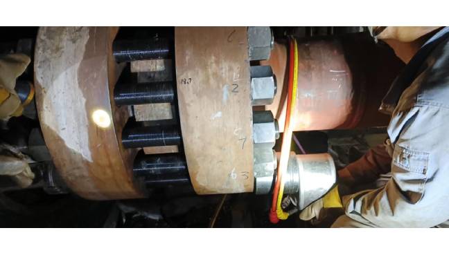 其實大型水輪機(jī)的很多位置也都是使用使用高強螺栓連接,像基礎(chǔ)環(huán)、座環(huán)、蝸売、尾水管排水盤形閥及其附件、蝸殼排水盤形閥及其附件機(jī)坑里襯底環(huán)、頂蓋、轉(zhuǎn)輪導(dǎo)葉及操作機(jī)構(gòu)、接力器、主軸及密封、輪機(jī)導(dǎo)軸承大軸自然補氣裝置等。這些螺栓的安裝預(yù)緊之后需要經(jīng)受住惡劣的運行環(huán)境,因此預(yù)緊力要求也是比較高。水輪機(jī)安裝預(yù)緊或者檢修做采用的螺栓預(yù)緊工具一般是以液壓螺栓拉伸器為主。液壓螺栓拉伸器軸向拉伸,螺栓上所加載的預(yù)緊力損耗較少,有效加載更多。但在一些特殊的位置,螺栓周圍空間特別小,只能使用薄型的中空液壓扳手來進(jìn)行預(yù)緊拆卸。因此,水輪機(jī)的安裝檢維修既需要螺栓拉伸器也需要液壓扳手。