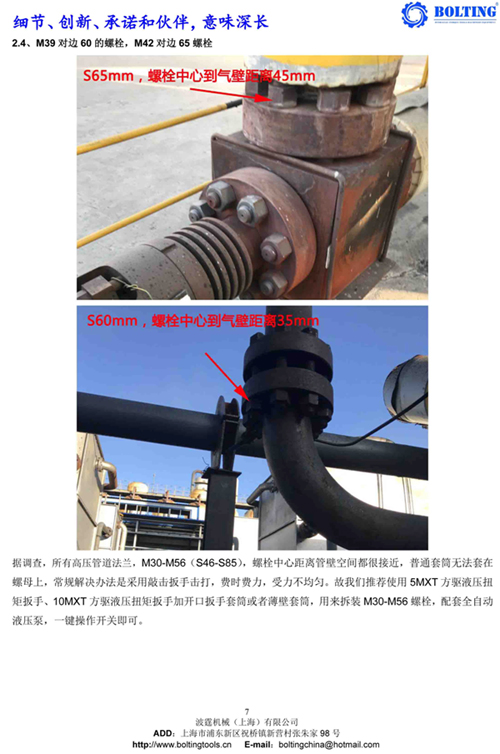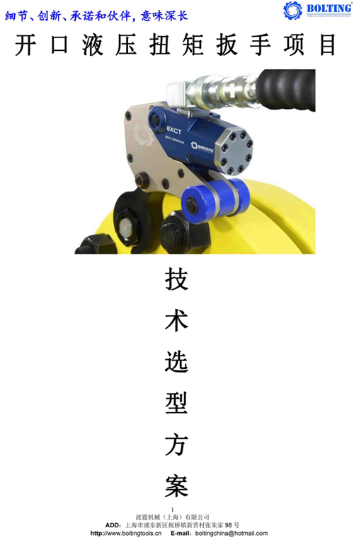 業(yè)主方之前從武漢購(gòu)買過(guò)一套德國(guó)品牌液壓扳手,使用情況并不理想,由于液壓泵和開口液壓扳手較為笨重,故不考慮。