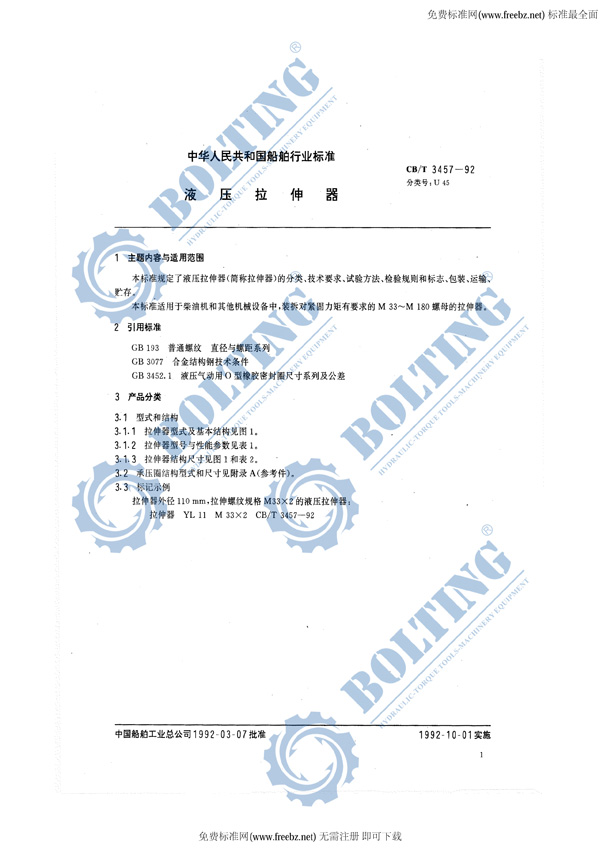 液壓拉伸器、液壓螺栓拉伸器、螺栓拉伸器執(zhí)行標(biāo)準(zhǔn)