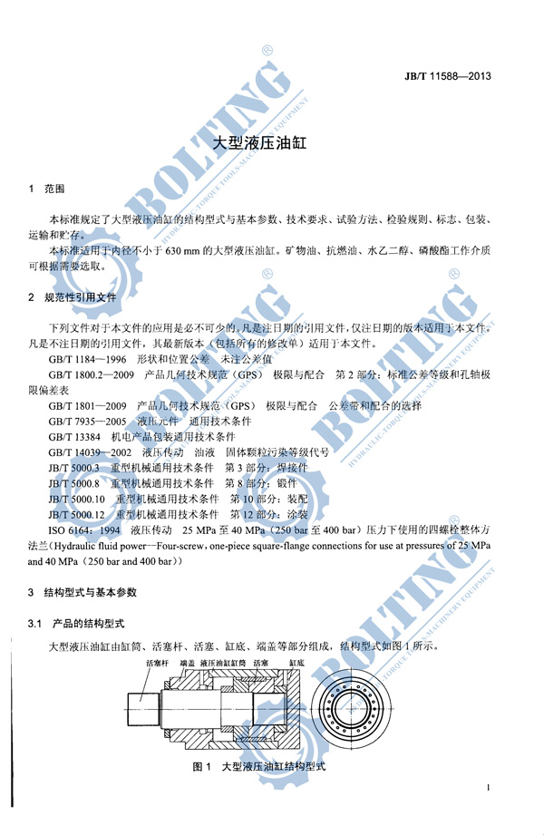 單雙作用大噸位液壓油缸、單雙作用大噸位液壓千斤頂執(zhí)行標準