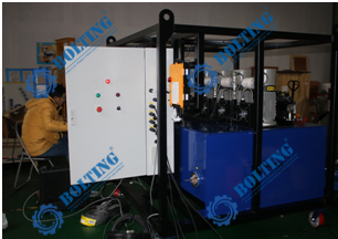 (1) 液壓動力單元配置四臺 HAWE 高 效RZ系列電動泵供油,正常情況下一臺電動泵為1臺液壓油缸供油; (2) 同時(shí)可以通過外部管路連接后,替代原有4臺泵中的一臺為其連接的液壓油缸供油; (3) 高頻電磁換向閥用于頂升/縮回控制; (4) 一個(gè) 800L 可用液壓油容量的油箱為系統(tǒng)的應(yīng)用和循環(huán)冷卻提供充足的油量; (5) 配置液壓油冷卻器可以及時(shí)冷卻液壓油,防止工作過程中液壓油溫度上升過快; |